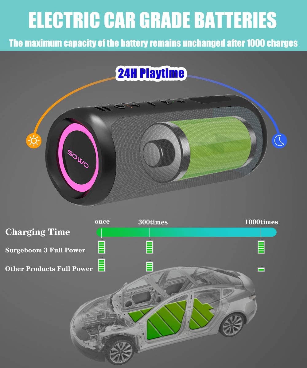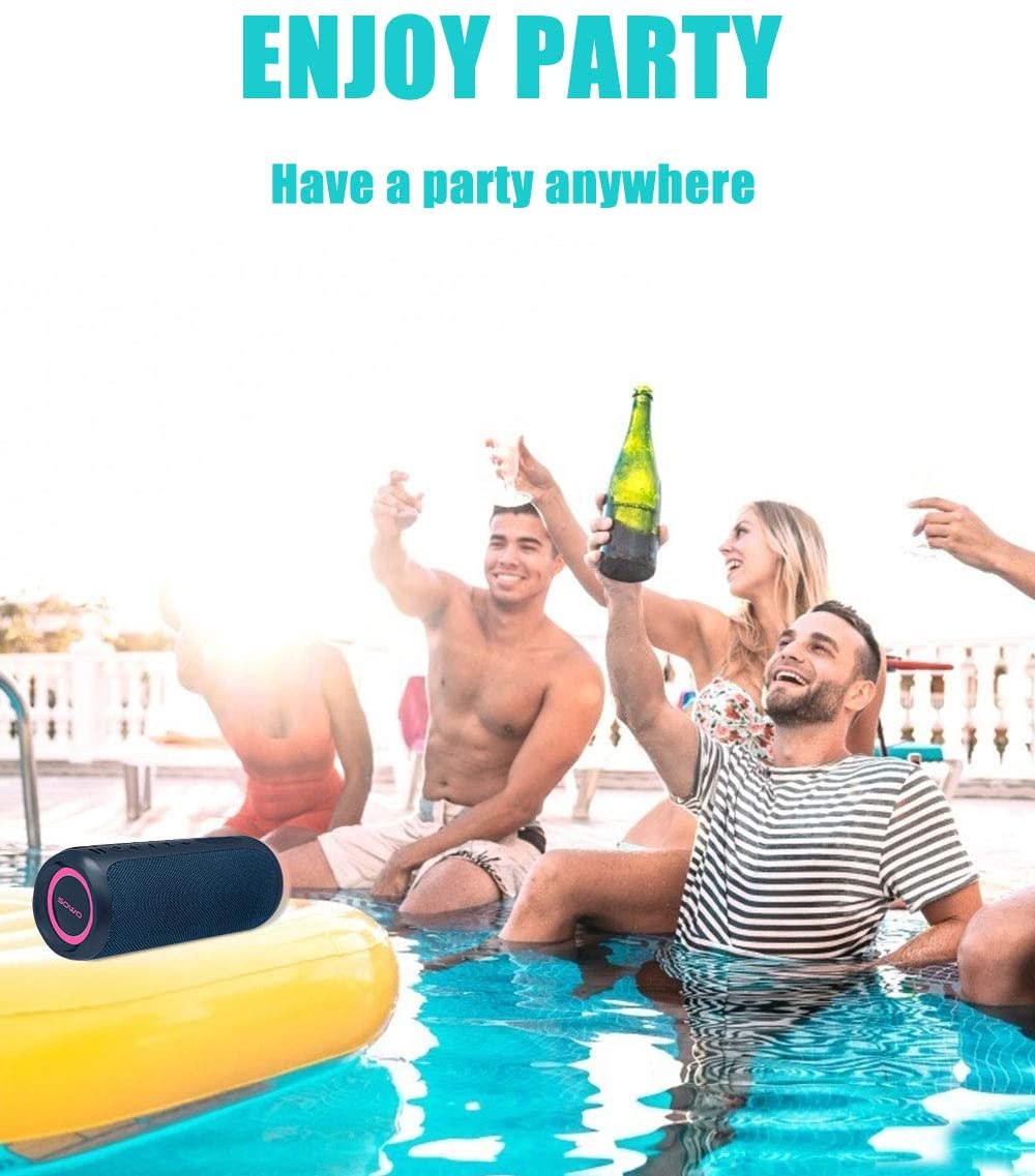 Portable Bluetooth Speaker with Subwoofer, 35W Bass Loud Speaker with Power Bank, IPX7 Waterproof, Wireless Stereo Pairing, 24H Playtime, Speaker with Lights for Outdoor Party, Camping – Black